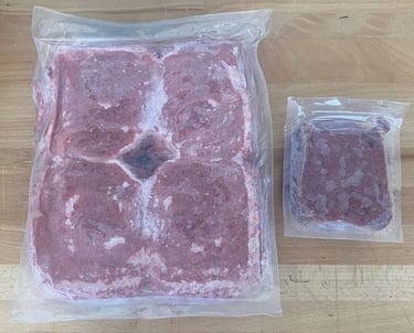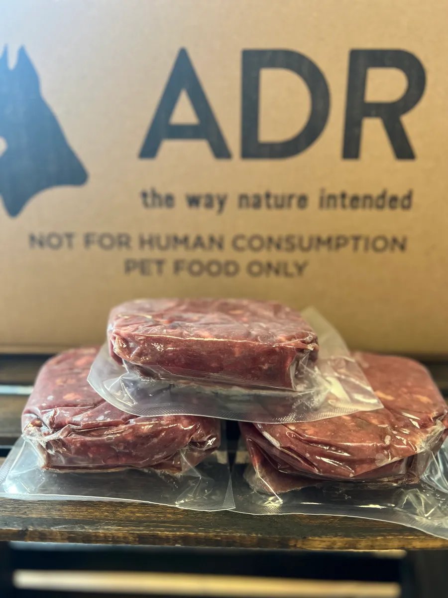 70% meat, 10% organ (w/tripe), 10% bone, 10% fruits, vegetables, and a K9 probiotic supplement.